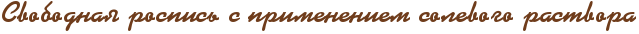 Сущность этого способа состоит в следующем: натянутую на раму ткань, в зависимости от характера рисунка, либо пропитывают водным раствором поваренной соли и после высыхания расписывают, либо роспись ведут красками из основных красителей, в которые введён раствор поваренной соли. Все это ограничивает растекаемость краски по ткани, даёт возможность выполнять рисунки свободными мазками, варьируя форму и степень насыщенности цветом. Свободную роспись красками с введением в них солевого раствора можно сочетать с обычной росписью холодным батиком. Для этого некоторые части рисунка выполняют свободной росписью с доработкой графическим рисунком, а фоновые перекрытия производят на участках, ограниченных резервирующим составом.